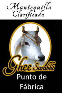 Nuestra mantequilla clarificada GHEE SURABHI, cuenta con el correspondiente Registro Sanitario INVIMA, y es fabricada de forma artesanal, en base a la mantequilla de vaca sin sal (o grasa de leche anhidra), seleccionada de granjas cuyas vacas son de libre pastoreo, conservando sus propiedades terapéuticas y de pureza, mediante los mismos procesos de producción utilizados por la cultura ancestral de la India. Algo importante para resaltar del Ghee, es que no contiene caseína, ni lactosa, pues son eliminados en su proceso de fabricación, pudiendo ser consumido por personas intolerantes con la lactosa. Su punto de humo es de los más altos en los aceites de cocina, alcanzando los 250 ° C.